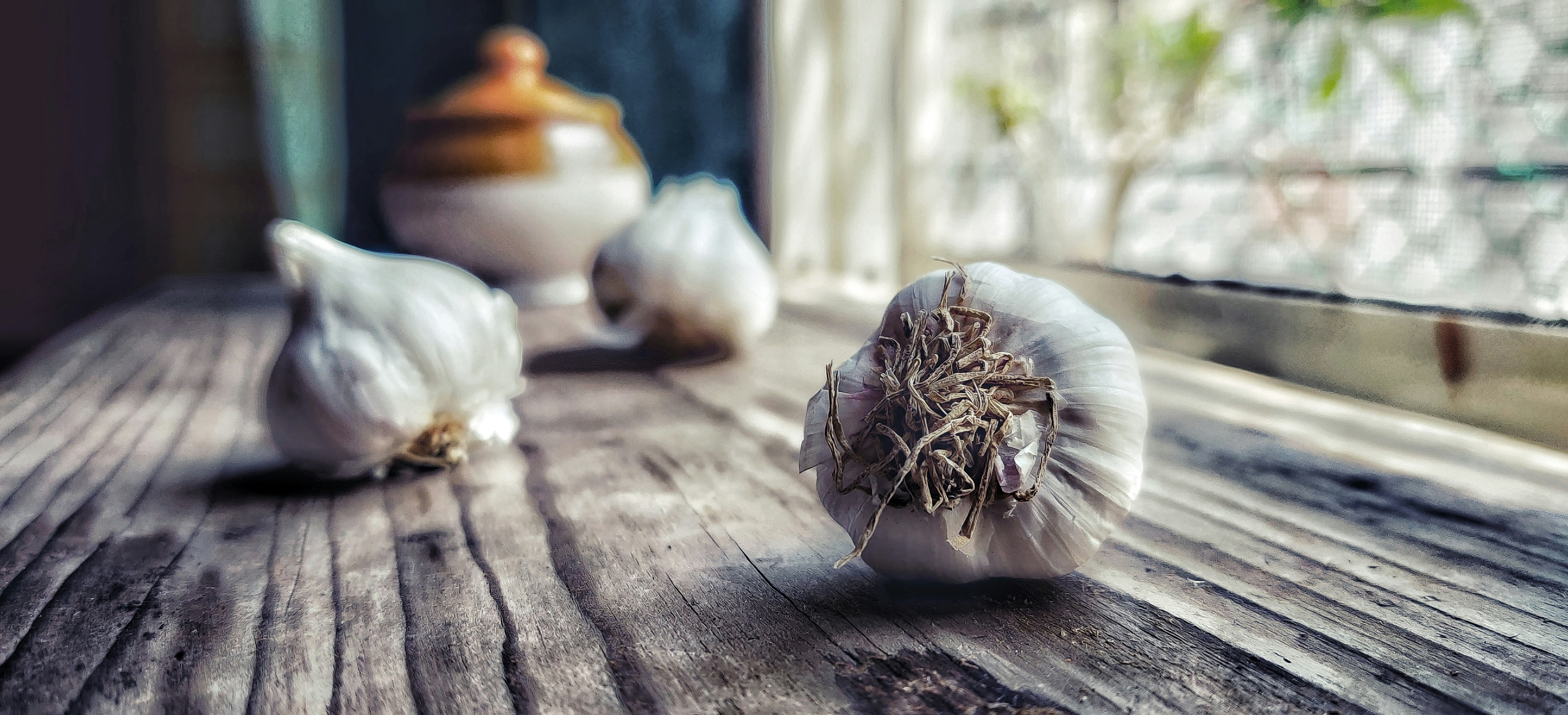 ニンニクやニンニクの芽を切ることで発生する成分、アリシンは強い殺菌作用があります。自然界で虫に傷つけられた時、ニンニクはアリシンを発生させ害虫から身を守っています。虫ばかりでなく、時には動物までも撃退するほどの刺激性があります。さらにカビの発生も抑えるほどの殺菌作用があるのです。
