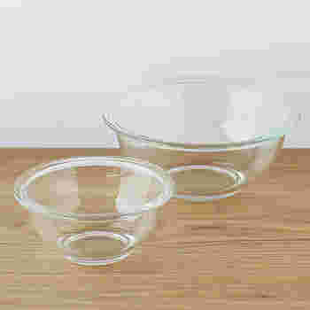 ひとり暮らしの方や、細かい料理に多用する場合は直径10cmほどの小さめの耐熱ボウルがおすすめです。食材の下ごしらえをしたり、ドレッシングを作ったり、ごはんを一膳分温めたり、と意外と活躍するのが小さめサイズです。ガラス製のものだと中身も見えやすく調理もスムーズです。さらにオーブンや電子レンジでも使えるガラス製のものだと、そのまま調理して食卓に出せるなど活用の幅が広がるので、何かと役立ちます。