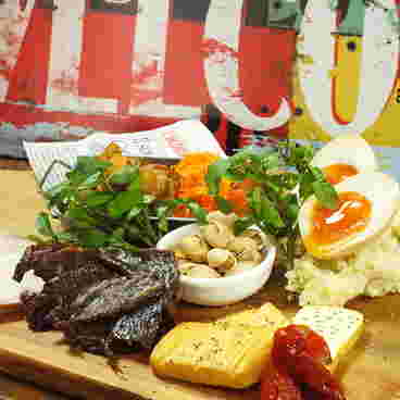 牛タンは炭火焼だけでなく、牛タンポテト明太チーズ巻き480円や、牛タンパンシチューチーズ焼き900円、牛タン味噌漬け780円もおすすめです。また魚介類では刺身5点盛り990円、鮭とばの炙り650円、干しホタルイカの炙り580円、すじこの燻製680円など、酒好きの心をくすぐるメニューが沢山あります。