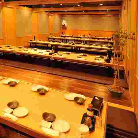 一番町店では、2~6名で使える落ち着いた雰囲気の個室もあり、ちょっとした飲み会などには大小のテーブル席もあります。また掘りごたつタイプの個室は8~10名の個室と、10~12名の個室、12~14名の個室、14~16名の個室、最大28人で使える個室、また最大42名の大人数宴会ができる個室と、個室が充実しています。最大84人まで貸し切りが可能です。もちろんカウンター席があるので、一人席もあります。